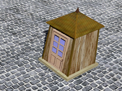 Wooden hut for the protection of customs and police surveillance personnel. Size 1.2m long and 1.2m wide, with hipped roof. Version CInSV, slightly sloped walls and no windows. The difference between versions lies in the difference of doors and windows.