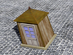 Wooden hut for the protection of customs and police surveillance personnel. Size 1.2m long and 1.2m wide, with hipped roof. Version DInSV, slightly sloped walls and no windows. The difference between versions lies in the difference of doors and windows.