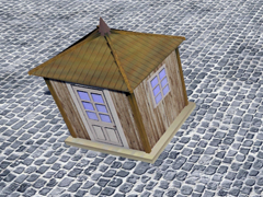 Wooden hut for the protection of customs and police surveillance personnel. Size 2m long and 2m wide, with hipped roof. Version B4. The difference between versions lies in the difference of doors and windows.