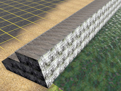 Breakwater with only three-part staggered stone walls on one side and a vertical wall on the other side, (without rocks) for the protection of port areas. Wall with a height of 18m and a base of 24m wide. Version 2i. It is a 3-part SPLINE, beginning, middle or repetition zone and end. It could be used as a port dock or a dam retaining wall.
