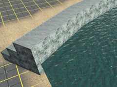 Breakwater with only three-part staggered stone walls on one side and a vertical wall on the other side, (without rocks) for the protection of port areas. Wall with a height of 18m and a base of 24m wide. Version 6i. It is a 3-part SPLINE, beginning, middle or repetition zone and end. It could be used as a port dock or a dam retaining wall.
