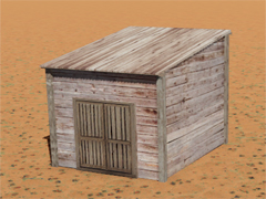 Small wooden shed, old west style, no night mode. Dimensions: 3m x 4m. Version 0I