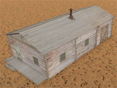 Wooden house, old west style, with chimney and smoke, no night mode. Dimensions: 6m x 12m. Version 5D
