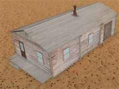 Wooden house, old west style, with chimney and smoke, no night mode. Dimensions: 6m x 12m. Version 5F