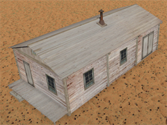 Wooden house, old west style, with chimney and smoke, no night mode. Dimensions: 6m x 12m. Version 5H
