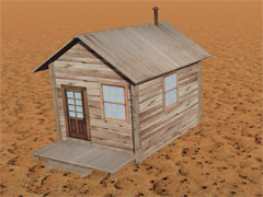 Small wooden house, old west style, with chimney and smoke, no night mode. Dimensions: 3m x 4m. Version 6F