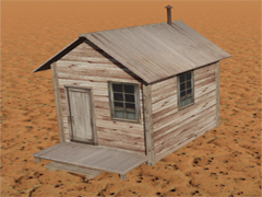 Small wooden house, old west style, with chimney and smoke, no night mode. Dimensions: 3m x 4m. Version 6H