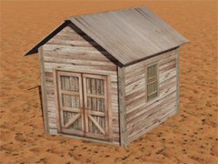 Small Wooden shed, old west style, no night mode. Dimensions: 3m x 4m. Version 6J