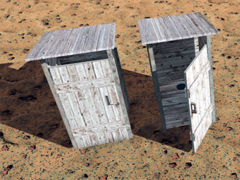 Outhouse, in the style of the old west, for personal hygiene in a group of 2. It is part of the grain elevator complex.