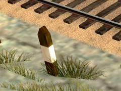 Protecciones con traviesas pintadas en blanco y negro para los antiguos pasos a nivel de Renfe en España.Version 4. Protections with sleepers painted in black and white for the old Renfe level crossings in Spain.Version 4.