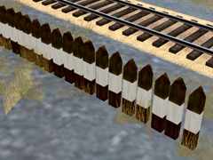 Protections with sleepers painted in black and white for the old Renfe level crossings in Spain. Version 2. Is a spline with lod-random-bias