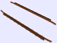 It is a track object: To make railway crossings (diamond junction or diamond crossing) at the same level. Length 4m, rail gauge 1668mm, with 10 bolts with union screws from the rail to the check rail (model B) every 40cm. Version or finish 1. For straight track and level with the ground. No spikes on the checkrails. Rail crossing designed for rail 30kg per meter, approximately 60.5 pounds per yard, suitable for medium rail. Rail 12 cm high. New version with the addition of the ''follow-gradient 1'' tag, to adapt to the inclinations of the railway track.
