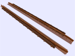 It is a track object: To make railway crossings (diamond junction or diamond crossing) at the same level. Length 5m, rail gauge 1067mm, with 13 bolts with union screws from the rail to the check rail (model B) every 40cm. Version or finish 1. For straight track and level with the ground. Rail crossing designed for UIC rail 60kg per meter, approximately 121 pounds per yard, not suitable for light rail. Rail 16 cm high. New version with the addition of the ''follow-gradient 1'' tag, to adapt to the inclinations of the railway track.