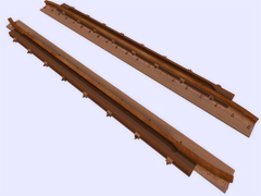 It is a track object: To make railway crossings (diamond junction or diamond crossing) at the same level. Length 3.2m, rail gauge 1067mm, with 8 bolts with union screws from the rail to the check rail (model B) every 40cm. Version or finish 1. For straight track and level with the ground. With spikes on the checkrails. Rail crossing designed for rail 30kg per meter, approximately 60.5 pounds per yard, suitable for medium rail. Rail 12 cm high. New version with the addition of the ''follow-gradient 1'' tag, to adapt to the inclinations of the railway track.