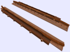 It is a track object: To make railway crossings (diamond junction or diamond crossing) at the same level. Length 2.4m, rail gauge 1067mm, with 6 bolts with union screws from the rail to the check rail (model B) every 40cm. Version or finish 1. For straight track and level with the ground. With spikes on the checkrails. Rail crossing designed for rail 30kg per meter, approximately 60.5 pounds per yard, suitable for medium rail. Rail 12 cm high. New version with the addition of the ''follow-gradient 1'' tag, to adapt to the inclinations of the railway track.