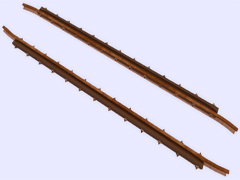 It is a track object: To make railway crossings (diamond junction or diamond crossing) at the same level. Length 5m, rail gauge 1067mm, with 13 bolts with union screws from the rail to the check rail (model B) every 40cm. Version or finish 1. For straight track and level with the ground. No spikes on the checkrails. Rail crossing designed for rail 30kg per meter, approximately 60.5 pounds per yard, suitable for medium rail. Rail 12 cm high. New version with the addition of the ''follow-gradient 1'' tag, to adapt to the inclinations of the railway track.
