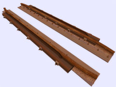 It is a track object: To make railway crossings (diamond junction or diamond crossing) at the same level. Length 2.4m, rail gauge 914mm, with 6 bolts with union screws from the rail to the check rail (model B) every 40cm. Version or finish 1. For straight track and level with the ground. With spikes on the checkrails. Rail crossing designed for rail 30kg per meter, approximately 60.5 pounds per yard, suitable for medium rail. Rail 12 cm high. New version with the addition of the ''follow-gradient 1'' tag, to adapt to the inclinations of the railway track.