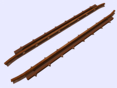 It is a track object: To make railway crossings (diamond junction or diamond crossing) at the same level. Length 3.2m, rail gauge 762mm, with 8 bolts with union screws from the rail to the check rail (model B) every 40cm. Version or finish 1. For straight track and level with the ground. No spikes on the checkrails. Rail crossing designed for rail 30kg per meter, approximately 60.5 pounds per yard, suitable for medium rail. Rail 12 cm high. New version with the addition of the ''follow-gradient 1'' tag, to adapt to the inclinations of the railway track.