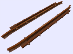 It is a track object: To make railway crossings (diamond junction or diamond crossing) at the same level. Length 2.4m, rail gauge 762mm, with 6 bolts with union screws from the rail to the check rail (model B) every 40cm. Version or finish 1. For straight track and level with the ground. No spikes on the checkrails. Rail crossing designed for rail 30kg per meter, approximately 60.5 pounds per yard, suitable for medium rail. Rail 12 cm high. New version with the addition of the ''follow-gradient 1'' tag, to adapt to the inclinations of the railway track.