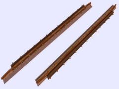 It is a track object: To make railway crossings (diamond junction or diamond crossing) at the same level. Length 5m, rail gauge 1435mm, with 13 bolts with union screws from the rail to the check rail (model B) every 40cm. Non-symmetric check rails at 45º. Version or finish 1. For straight track and level with the ground. Rail crossing designed for UIC rail 60kg per meter, approximately 121 pounds per yard, not suitable for light rail. Rail 16 cm high. New version with the addition of the ''follow-gradient 1'' tag, to adapt to the inclinations of the railway track.
