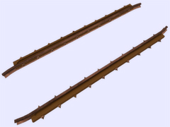 It is a track object: To make railway crossings (diamond junction or diamond crossing) at the same level. Length 4m, rail gauge 1435mm, with 10 bolts with union screws from the rail to the check rail (model B) every 40cm. Version or finish 2. For straight track and level with the ground. No spikes on the checkrails. Rail crossing designed for rail 30kg per meter, approximately 60.5 pounds per yard, suitable for medium rail. Rail 12 cm high. New version with the addition of the ''follow-gradient 1'' tag, to adapt to the inclinations of the railway track.