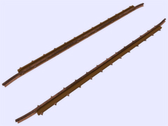 It is a track object: To make railway crossings (diamond junction or diamond crossing) at the same level. Length 5m, rail gauge 1435mm, with 13 bolts with union screws from the rail to the check rail (model B) every 40cm. Version or finish 2. For straight track and level with the ground. No spikes on the checkrails. Rail crossing designed for rail 30kg per meter, approximately 60.5 pounds per yard, suitable for medium rail. Rail 12 cm high. New version with the addition of the ''follow-gradient 1'' tag, to adapt to the inclinations of the railway track.