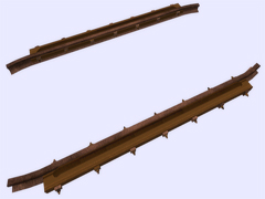 It is a track object: To make railway crossings (diamond junction or diamond crossing) at the same level. Length 2.6m, rail gauge 1668mm, with 7 bolts with union screws from the rail to the check rail (model B) every 40cm. Version or finish 2. For straight track and level with the ground. No spikes on the checkrails. Rail crossing designed for rail 30kg per meter, approximately 60.5 pounds per yard, suitable for medium rail. Rail 12 cm high. New version with the addition of the ''follow-gradient 1'' tag, to adapt to the inclinations of the railway track.
