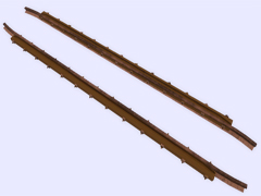 It is a track object: To make railway crossings (diamond junction or diamond crossing) at the same level. Length 5m, rail gauge 1000mm, with 13 bolts with union screws from the rail to the check rail (model B) every 40cm. Version or finish 2. For straight track and level with the ground. No spikes on the checkrails. Rail crossing designed for rail 30kg per meter, approximately 60.5 pounds per yard, suitable for medium rail. Rail 12 cm high.