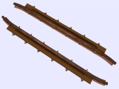 It is a track object: To make railway crossings (diamond junction or diamond crossing) at the same level. Length 2.4m, rail gauge 762mm, with 6 bolts with union screws from the rail to the check rail (model B) every 40cm. Version or finish 2. For straight track and level with the ground. No spikes on the checkrails. Rail crossing designed for rail 30kg per meter, approximately 60.5 pounds per yard, suitable for medium rail. Rail 12 cm high. New version with the addition of the ''follow-gradient 1'' tag, to adapt to the inclinations of the railway track.