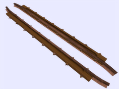 It is a track object: To make railway crossings (diamond junction or diamond crossing) at the same level. Length 3.2m, rail gauge 610mm, with 8 bolts with union screws from the rail to the check rail (model B) every 40cm. Version or finish 2. For straight track and level with the ground. No spikes on the checkrails. Rail crossing designed for rail 30kg per meter, approximately 60.5 pounds per yard, suitable for medium rail. Rail 12 cm high. New version with the addition of the ''follow-gradient 1'' tag, to adapt to the inclinations of the railway track.