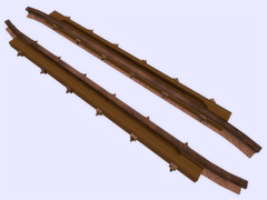 It is a track object: To make railway crossings (diamond junction or diamond crossing) at the same level. Length 2.4m, rail gauge 610mm, with 6 bolts with union screws from the rail to the check rail (model B) every 40cm. Version or finish 2. For straight track and level with the ground. No spikes on the checkrails. Rail crossing designed for rail 30kg per meter, approximately 60.5 pounds per yard, suitable for medium rail. Rail 12 cm high. New version with the addition of the ''follow-gradient 1'' tag, to adapt to the inclinations of the railway track.
