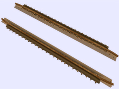 It is a track object: To make railway crossings (diamond junction or diamond crossing) at the same level. Length 5m, rail gauge 1435mm, with 25 bolts with union screws from the rail to the check rail (model A) every 20cm. Version or finish 3. For straight track and level with the ground. Rail crossing designed for UIC rail 60kg per meter, approximately 121 pounds per yard, not suitable for light rail. Rail 16 cm high. New version with the addition of the ''follow-gradient 1'' tag, to adapt to the inclinations of the railway track.