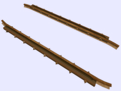 It is a track object: To make railway crossings (diamond junction or diamond crossing) at the same level. Length 3.2m, rail gauge 1435mm, with 8 bolts with union screws from the rail to the check rail (model B) every 40cm. Version or finish 3. For straight track and level with the ground. No spikes on the checkrails. Rail crossing designed for rail 30kg per meter, approximately 60.5 pounds per yard, suitable for medium rail. Rail 12 cm high. New version with the addition of the ''follow-gradient 1'' tag, to adapt to the inclinations of the railway track.
