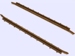 It is a track object: To make railway crossings (diamond junction or diamond crossing) at the same level. Length 4m, rail gauge 1435mm, with 10 bolts with union screws from the rail to the check rail (model B) every 40cm. Version or finish 2. For straight track and level with the ground. No spikes on the checkrails. Rail crossing designed for rail 30kg per meter, approximately 60.5 pounds per yard, suitable for medium rail. Rail 12 cm high.