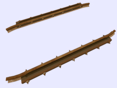 It is a track object: To make railway crossings (diamond junction or diamond crossing) at the same level. Length 2.6m, rail gauge 1668mm, with 7 bolts with union screws from the rail to the check rail (model B) every 40cm. Version or finish 3. For straight track and level with the ground. No spikes on the checkrails. Rail crossing designed for rail 30kg per meter, approximately 60.5 pounds per yard, suitable for medium rail. Rail 12 cm high. New version with the addition of the ''follow-gradient 1'' tag, to adapt to the inclinations of the railway track.