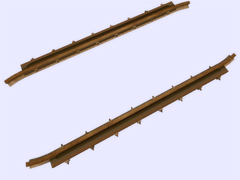 It is a track object: To make railway crossings (diamond junction or diamond crossing) at the same level. Length 3.2m, rail gauge 1668mm, with 8 bolts with union screws from the rail to the check rail (model B) every 40cm. Version or finish 3. For straight track and level with the ground. No spikes on the checkrails. Rail crossing designed for rail 30kg per meter, approximately 60.5 pounds per yard, suitable for medium rail. Rail 12 cm high. New version with the addition of the ''follow-gradient 1'' tag, to adapt to the inclinations of the railway track.