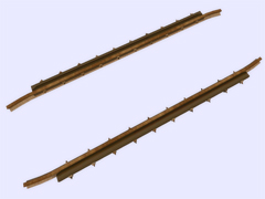 It is a track object: To make railway crossings (diamond junction or diamond crossing) at the same level. Length 4m, rail gauge 1668mm, with 10 bolts with union screws from the rail to the check rail (model B) every 40cm. Version or finish 3. For straight track and level with the ground. No spikes on the checkrails. Rail crossing designed for rail 30kg per meter, approximately 60.5 pounds per yard, suitable for medium rail. Rail 12 cm high. New version with the addition of the ''follow-gradient 1'' tag, to adapt to the inclinations of the railway track.