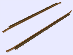 It is a track object: To make railway crossings (diamond junction or diamond crossing) at the same level. Length 5m, rail gauge 1668mm, with 13 bolts with union screws from the rail to the check rail (model B) every 40cm. Version or finish 3. For straight track and level with the ground. No spikes on the checkrails. Rail crossing designed for rail 30kg per meter, approximately 60.5 pounds per yard, suitable for medium rail. Rail 12 cm high. New version with the addition of the ''follow-gradient 1'' tag, to adapt to the inclinations of the railway track.