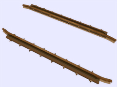 It is a track object: To make railway crossings (diamond junction or diamond crossing) at the same level. Length 3.2m, rail gauge 1520mm, with 8 bolts with union screws from the rail to the check rail (model B) every 40cm. Version or finish 2. For straight track and level with the ground. No spikes on the checkrails. Rail crossing designed for rail 30kg per meter, approximately 60.5 pounds per yard, suitable for medium rail. Rail 12 cm high.