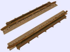 It is a track object: To make railway crossings (diamond junction or diamond crossing) at the same level. Length 2.4m, rail gauge 1067mm, with 7 bolts with union screws from the rail to the check rail (model B) every 40cm. Version or finish 3. For straight track and level with the ground. Rail crossing designed for UIC rail 60kg per meter, approximately 121 pounds per yard, not suitable for light rail. Rail 16 cm high. New version with the addition of the ''follow-gradient 1'' tag, to adapt to the inclinations of the railway track.