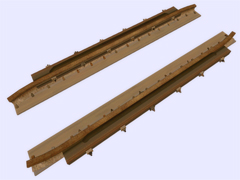 It is a track object: To make railway crossings (diamond junction or diamond crossing) at the same level. Length 2.4m, rail gauge 1067mm, with 6 bolts with union screws from the rail to the check rail (model B) every 40cm. Version or finish 3. For straight track and level with the ground. With spikes on the checkrails. Rail crossing designed for rail 30kg per meter, approximately 60.5 pounds per yard, suitable for medium rail. Rail 12 cm high. New version with the addition of the ''follow-gradient 1'' tag, to adapt to the inclinations of the railway track.