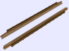 It is a track object: To make railway crossings (diamond junction or diamond crossing) at the same level. Length 5m, rail gauge 1067mm, with 13 bolts with union screws from the rail to the check rail (model B) every 40cm. Version or finish 3. For straight track and level with the ground. With spikes on the checkrails. Rail crossing designed for rail 30kg per meter, approximately 60.5 pounds per yard, suitable for medium rail. Rail 12 cm high. New version with the addition of the ''follow-gradient 1'' tag, to adapt to the inclinations of the railway track.