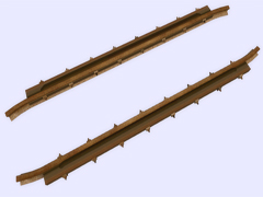 It is a track object: To make railway crossings (diamond junction or diamond crossing) at the same level. Length 3.2m, rail gauge 1067mm, with 8 bolts with union screws from the rail to the check rail (model B) every 40cm. Version or finish 3. For straight track and level with the ground. No spikes on the checkrails. Rail crossing designed for rail 30kg per meter, approximately 60.5 pounds per yard, suitable for medium rail. Rail 12 cm high. New version with the addition of the ''follow-gradient 1'' tag, to adapt to the inclinations of the railway track.