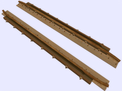 It is a track object: To make railway crossings (diamond junction or diamond crossing) at the same level. Length 3.2m, rail gauge 1000mm, with 8 bolts with union screws from the rail to the check rail (model B) every 40cm. Version or finish 2. For straight track and level with the ground. With spikes on the checkrails. Rail crossing designed for rail 30kg per meter, approximately 60.5 pounds per yard, suitable for medium rail. Rail 12 cm high. New version with the addition of the ''follow-gradient 1'' tag, to adapt to the inclinations of the railway track.