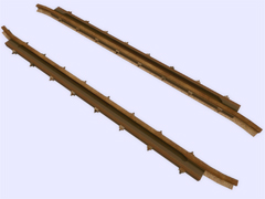 It is a track object: To make railway crossings (diamond junction or diamond crossing) at the same level. Length 3.2m, rail gauge 1000mm, with 8 bolts with union screws from the rail to the check rail (model B) every 40cm. Version or finish 3. For straight track and level with the ground. No spikes on the checkrails. Rail crossing designed for rail 30kg per meter, approximately 60.5 pounds per yard, suitable for medium rail. Rail 12 cm high. New version with the addition of the ''follow-gradient 1'' tag, to adapt to the inclinations of the railway track.