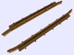 It is a track object: To make railway crossings (diamond junction or diamond crossing) at the same level. Length 2.4m, rail gauge 914mm, with 6 bolts with union screws from the rail to the check rail (model B) every 40cm. Version or finish 3. For straight track and level with the ground. No spikes on the checkrails. Rail crossing designed for rail 30kg per meter, approximately 60.5 pounds per yard, suitable for medium rail. Rail 12 cm high.