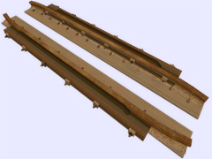 It is a track object: To make railway crossings (diamond junction or diamond crossing) at the same level. Length 2.4m, rail gauge 762mm, with 6 bolts with union screws from the rail to the check rail (model B) every 40cm. Version or finish 3. For straight track and level with the ground. With spikes on the checkrails. Rail crossing designed for rail 30kg per meter, approximately 60.5 pounds per yard, suitable for medium rail. Rail 12 cm high. New version with the addition of the ''follow-gradient 1'' tag, to adapt to the inclinations of the railway track.