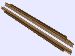 It is a track object: To make railway crossings (diamond junction or diamond crossing) at the same level. Length 5m, rail gauge 762mm, with 13 bolts with union screws from the rail to the check rail (model B) every 40cm. Version or finish 3. For straight track and level with the ground. With spikes on the checkrails. Rail crossing designed for rail 30kg per meter, approximately 60.5 pounds per yard, suitable for medium rail. Rail 12 cm high. New version with the addition of the ''follow-gradient 1'' tag, to adapt to the inclinations of the railway track.