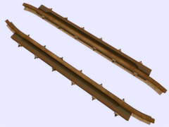 It is a track object: To make railway crossings (diamond junction or diamond crossing) at the same level. Length 2.4m, rail gauge 762mm, with 6 bolts with union screws from the rail to the check rail (model B) every 40cm. Version or finish 3. For straight track and level with the ground. No spikes on the checkrails. Rail crossing designed for rail 30kg per meter, approximately 60.5 pounds per yard, suitable for medium rail. Rail 12 cm high. New version with the addition of the ''follow-gradient 1'' tag, to adapt to the inclinations of the railway track.