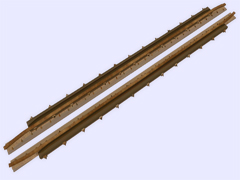 It is a track object: To make railway crossings (diamond junction or diamond crossing) at the same level. Length 5m, rail gauge 610mm, with 13 bolts with union screws from the rail to the check rail (model B) every 40cm. Version or finish 3. For straight track and level with the ground. With spikes on the checkrails. Rail crossing designed for rail 30kg per meter, approximately 60.5 pounds per yard, suitable for medium rail. Rail 12 cm high. New version with the addition of the ''follow-gradient 1'' tag, to adapt to the inclinations of the railway track.